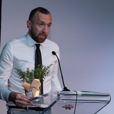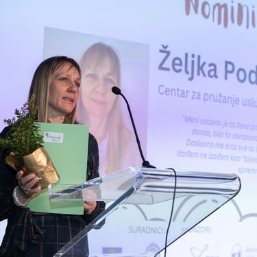 Brenda, članica odbora, pročitala je obrazloženje odluke Odbora korisnika i obznanila kako je ovogodišnji dobitnik Priznanja Marinko Pleskina koji je radio u Centru za pružanje usluga u zajednici Vladimir Nazor.