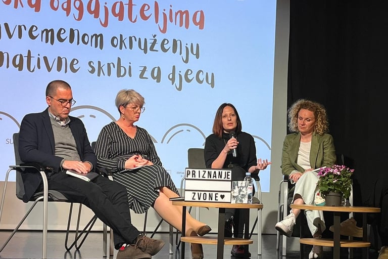 U drugom dijelu programa održan je okrugli stol “Podrška odgajateljima u suvremenom okruženju alternativne skrbi za djecu”. O temi skupa iz različitih je perspektiva govorilo je četiri stručnjaka: